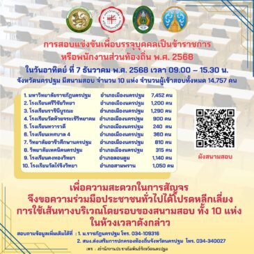 นครปฐม : สนามสอบท้องถิ่น 10 แห่ง 14,757 คน ในวันอาทิตย์ที่ 7 ธันวาคม 2568