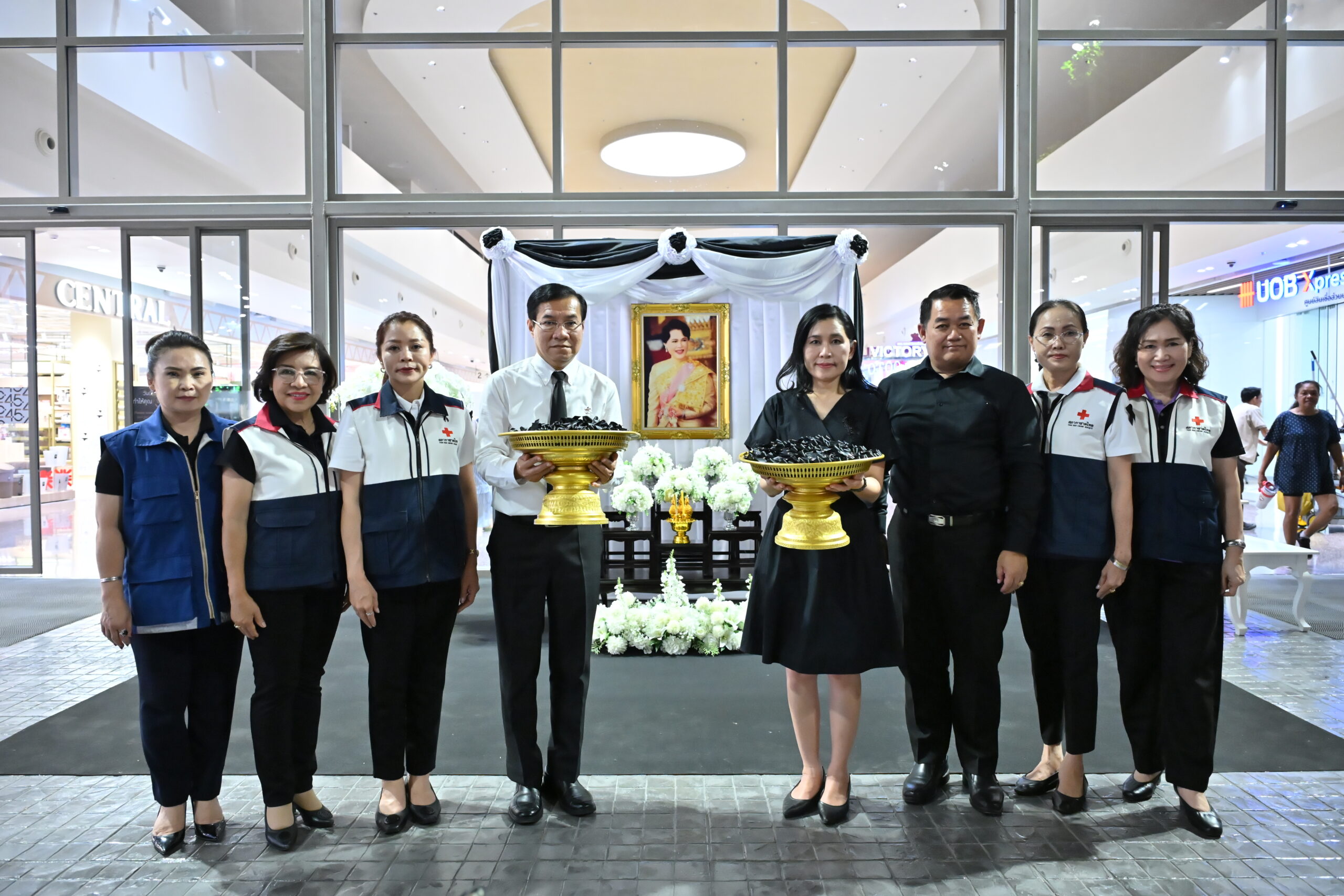จ.นครปฐม จัดกิจกรรมจิตอาสาทำโบไว้อาลัย 10,000 ชิ้น เหล่ากาชาดจังหวัดนครปฐม ร่วมกับเซ็นทรัลนครปฐม จัดกิจกรรมจิตอาสาทำโบว์สีดำสำหรับร่วมไว้อาลัย จำนวน 10,000 ชิ้น นำไปแจกให้กับประชาชนทั่วไป เพื่อร่วมน้อมถวายความอาลัยแด่สมเด็จพระนางเจ้าสิริกิติ์ พระบรมราชินีนาถ พระบรมราชชนนีพันปีหลวง