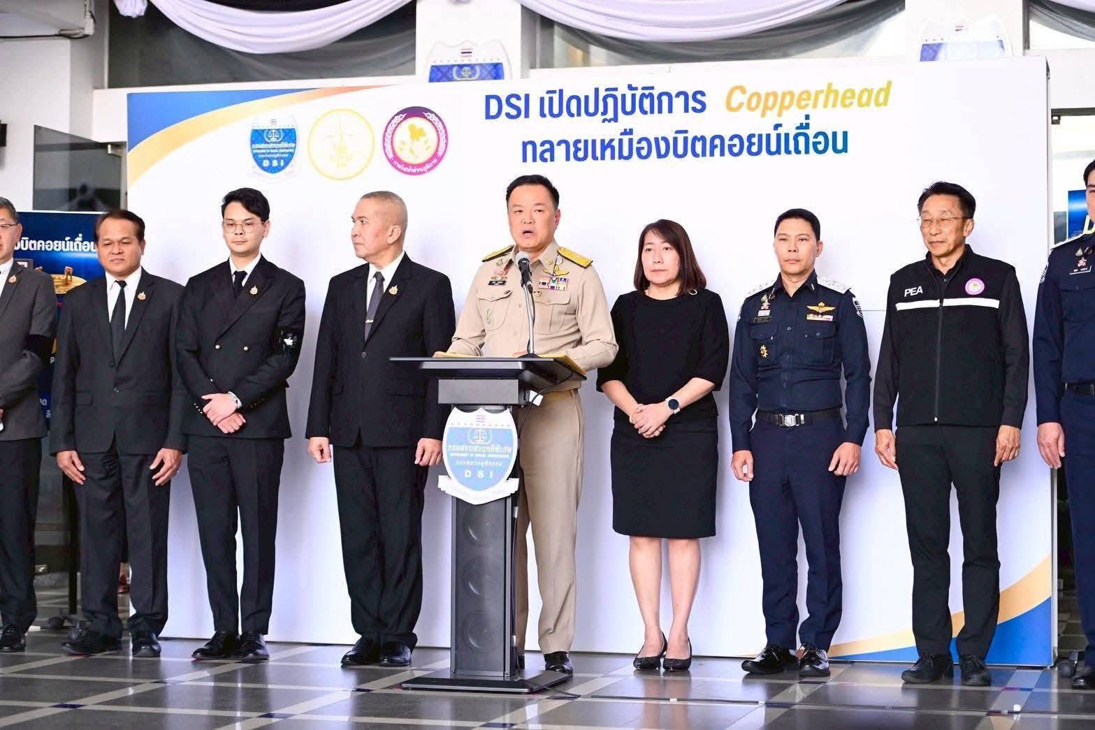 PEA ร่วมกับ DSI แถลงปฏิบัติการทลายเหมืองบิตคอยน์เถื่อน