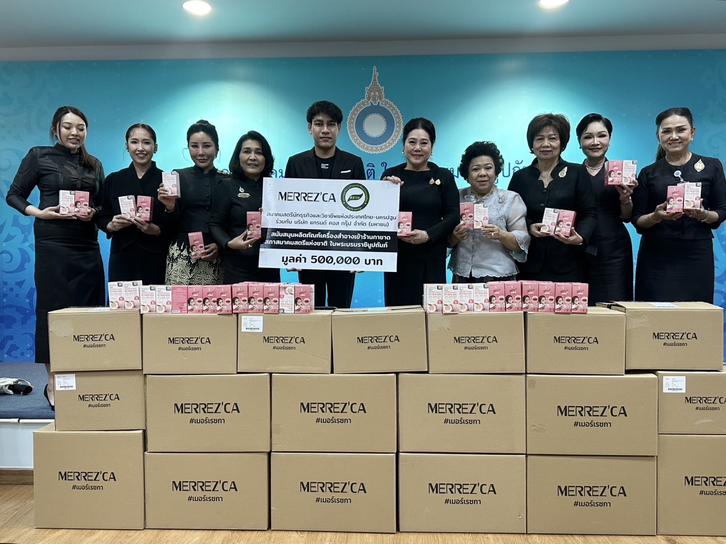 สมาคมสตรีนักธุรกิจและวิชาชีพแห่งประเทศไทย-นครปฐม ร่วมกับบริษัท แกรนด์ คอส กรุ๊ป จำกัด (มหาชน) ภายใต้ แบรนด์ MERREZCA สนับสนุนผลิตภัณฑ์เครื่องสำอางเข้าร้านกาชาดสภาสมาคมสตรีแห่งชาติในพระบรมราชินูปถัมภ์ มูลค่า 500,000 บาท