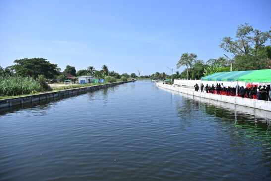 รองนายกรัฐมนตรีและรัฐมนตรีว่าการกระทรวงเกษตรและสหกรณ์ ได้กล่าวว่า การเดินนทางมาที่จังหวัดนครปฐม เนื่องจากมีปัญหาหลายเรื่อง โดยเฉพาะปัญหาการบริหารจัดการน้ำแม่น้ำท่าจีน ซึ่งเชื่อมโยงมาตั้งแต่จังหวัดสุพรรณบุรีมาถึงจังหวัดนครปฐม โดยได้รับฟังปัญหาจากผู้นำท้องถิ่น ว่าแม่น้ำท่าจีนถึงเวลาต้องขุดลอก ปัจจุบันมีนวัตกรรมใหม่ ซึ่งได้ดำเนินการที่จังหวัดสมุทรสาคร ใช้เวลาในการดำเนินการ 1 เดือน เพื่อขยายคลองให้มีความกว้างและลึกได้เหมือนเดิม
