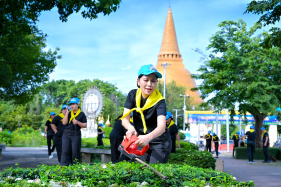 ที่บริเวณลานหน้าศูนย์การค้าเซ็นทรัลศาลายา อำเภอสามพราน จังหวัดนครปฐม โดยมี นายยงยุทธ สวนทอง รองผู้ว่าราชการจังหวัดนครปฐม นำข้าราชการ จิตอาสาพระราชทาน จิตอาสาภาคประชาชน และจิตอาสา 904 ร่วมดำเนินกิจกรรมจิตอาสาพัฒนา ปรับภูมิทัศน์