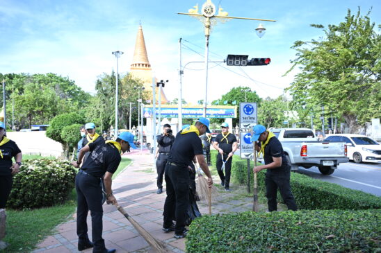 วันที่ 20 พฤศจิกายน 2568 ที่บริเวณถนนหน้าพระ(ทิศตะวันออก) องค์พระปฐมเจดีย์ อำเภอเมืองนครปฐม จังหวัดนครปฐม นางสาวอโรชา นันทมนตรี ผู้ว่าราชการจังหวัดนครปฐม เป็นประธานนำข้าราชการ จิตอาสาพระราชทาน จิตอาสาภาคประชาชน และจิตอาสา 904 ร่วมดำเนินกิจกรรมจิตอาสาพัฒนา ปรับภูมิทัศน์ โดยเริ่มจากบริเวณแยกโพธิ์ทอง จนถึงจนถึงศูนย์อาหาร Meet & EAT อำเภอเมืองนครปฐม จังหวัดนครปฐม ซึ่งเป็นพื้นที่เส้นทางเพื่อเตรียมความพร้อมในการจัดพิธีเจริญพระพุทธมนต์และทำบุญตักบาตรถวายเป็นพระราชกุศล แด่พระบาทสมเด็จพระมงกุฎเกล้าเจ้าอยู่หัว เนื่องในโอกาสวันคล้าย วันสวรรคต 100 ปี 25 พฤศจิกายน 2568 และถวายพระกุศลแด่สมเด็จพระเจ้าภคินีเธอ เจ้าฟ้าเพชรรัตนราชสุดา สิริโสภาพัณณวดี เนื่องในโอกาสวันคล้ายวันประสูติครบ 100 ปี 24 พฤศจิกายน 2568