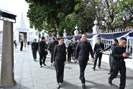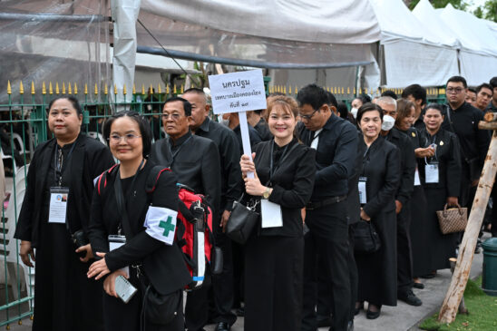 วันที่ 21 พฤศจิกายน 2568 เวลา 09.00 น. นางสาวอโรชา นันทมนตรี ผู้ว่าราชการจังหวัดนครปฐม พร้อมด้วย รองผู้ว่าราชการจังหวัด รองนายกเหล่ากาชาดจังหวัด หัวหน้าส่วนราชการ นายอำเภอ นำประชาชนจากทั้ง 7 อำเภอ รอบแรก จำนวน 750 คน เข้าเฝ้าฯ กราบถวายบังคมพระบรมศพ สมเด็จพระนางเจ้าสิริกิติ์ พระบรมราชินีนาถ พระบรมราชชนนีพันปีหลวง ณ พระที่นั่งดุสิตมหาปราสาท ในพระบรมมหาราชวัง กรุงเทพมหานคร โดยจังหวัดนครปฐม ได้กำหนดแผนการเดินทางของประชาชน เพื่อเข้าเฝ้าฯ กราบถวายบังคมพระบรมศพ ณ พระที่นั่งดุสิตมหาปราสาท กรุงเทพมหานคร จำนวน 4 รอบ ๆ ละ 750 คน
