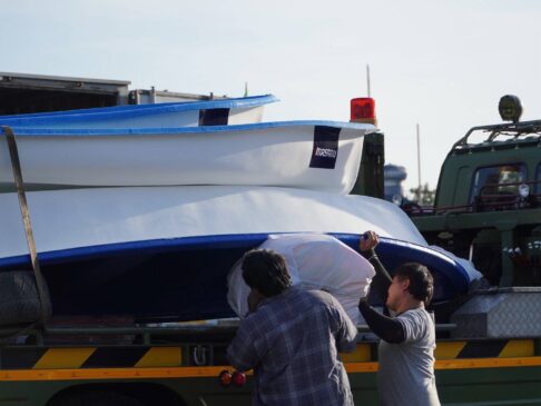 สำหรับเรือไฟเบอร์กลาส พร้อมอุปกรณ์ที่ส่งมอบไปยัง พัน.ร.8 ค่ายกรมหลวงสงขลานครินทร์ ศูนย์การนาวิกโยธิน กองทัพเรือ แล้วนั้น ได้แก่ เรือ 13 ฟุต 7 ลำ เรือ 10 ฟุต 4 ลำ เรือ 8 ฟุต 1 ลำ พร้อมเครื่องฮอนด้า หางยาว 13 แรง 1 เครื่อง เครื่องคาวาม่า หางยาว 13 แรง 2 เครื่อง ไม้พาย 22 อัน และชูชีพ 120 ตัว