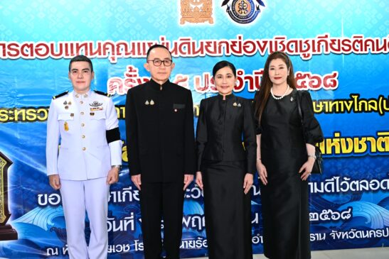 วันที่ 30 พฤศจิกายน 2568 ที่ห้องเตมียเวส ตึกบัญชาการโรงเรียนนายร้อยตำรวจ อำเภอสามพราน จังหวัดนครปฐม ม.ล.ปนัดดา ดิศกุล อดีตปลัดสำนักนายกรัฐมนตรี และเลขาธิการมูลนิธิศรีสวางควัฒน ในพระอุปถัมภ์ สมเด็จพระเจ้าน้องนางเธอ เจ้าฟ้าจุฬาภรณวลัยลักษณ์ อัครราชกุมารี กรมพระศรีสวางควัฒน วรขัตติยราชนารี เป็นประธานมอบใบประกาศเกียรติคุณและโล่ประกาศเกียรติคุณ โครงการตอบแทนคุณแผ่นดินยกย่องเชิดชูเกียรติคนดีของสังคม ครั้งที่ 5 ประจำปี 2568 โดยมีนางสาวอโรชา นันทมนตรี ผู้ว่าราชการจังหวัดนครปฐม ให้การต้อนรับ