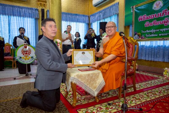 วันที่ 18 ธันวาคม 68 ที่ หอปริยัติธรรม (โรงเรียนผู้สูงอายุสุขภาพดีนครปฐม) วัดไผ่ล้อม พระอารามหลวง จังหวัดนครปฐม นายจิรวัฒน์ สะสมทรัพย์ นายกองค์การบริหารส่วนจังหวัดนครปฐม เป็นประธานในพิธีมอบเกียรติบัตรแก่นักเรียน โรงเรียนผู้สูงอายุสุขภาพดีนครปฐม รุ่นที่ 8 ประจำปี พ.ศ.2568 จำนวน 50 คน โดยมีพระครูปลัดสิทธิวัฒน์ (หลวงพี่น้ำฝน) ผู้รักษาการแทนเจ้าอาวาสฯ เป็นประธานฝ่ายสงฆ์ ร่วมด้วยหัวหน้าส่วนราชการที่เกี่ยวข้องเข้าร่วมในพิธีโดยพร้อมเพรียง