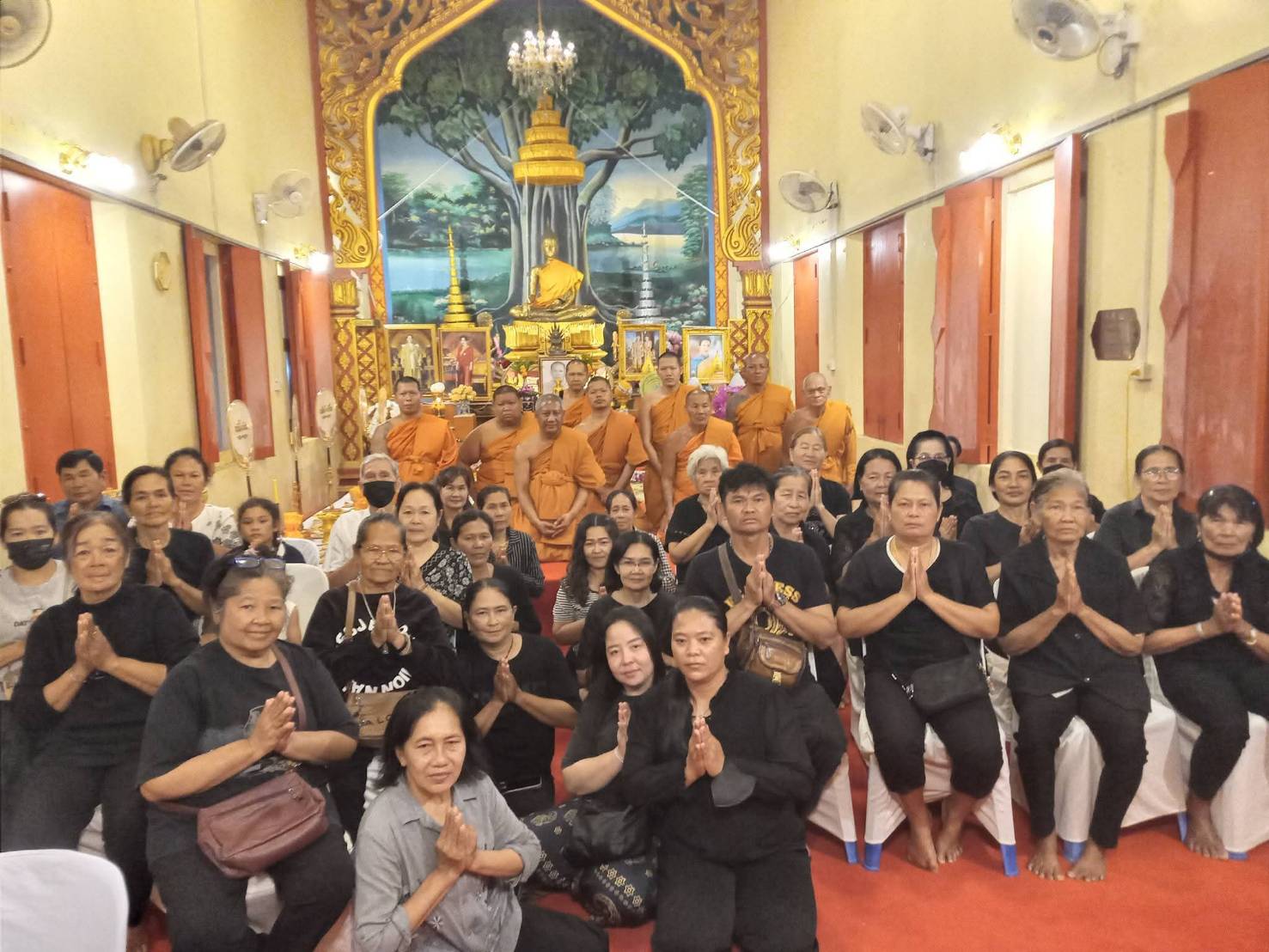 ภายในพิธีคณะสงฆ์ เจ้าหน้าที่ และพสกนิกรชาวบ้านรางปลาหมอ แต่งกายด้วยชุด ขาว-ดำ ไว้ทุกข์ เข้าร่วมประกอบพิธีด้วยความสงบและเปี่ยมด้วยความอาลัย โดยมีการประกอบพิธีทางศาสนา อาทิ การจุดธูปเทียนบูชาพระรัตนตรัยและเครื่องทองน้อย เบื้องหน้าพระฉายาลักษณ์ สมเด็จพระนางเจ้าสิริกิติ์ พระบรมราชินีนาถ พระบรมราชชนนีพันปีหลวง พระสงฆ์สวดพระอภิธรรม ถวายเครื่องไทยธรรม และพิธีกรวดน้ำรับพร