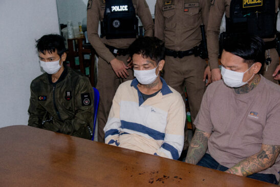 พบผู้ต้องหาที่ 1 พร้อมของกลางรถจักรยานยนต์คันที่ถูกลักไป และรถจักรยานยนต์ที่ได้มาจากการก่อเหตุในพื้นที่อื่นอีก จำนวน 2 คัน ซุกซ่อนอยู่ภายในห้องพัก ระหว่างทำการตรวจค้นได้มี นายขจรศักดิ์ หรือ นุ นิ่มเนียง ผู้ต้องหาที่ 3 โทรศัพท์ติดต่อเพื่อนัดหมายมารับรถจักรยานยนต์ที่ได้จากการก่อเหตุ จำนวน 3 คัน ต่อมาผู้ต้องหาที่ 3 ได้ขับรถยนต์ยี่ห้อโตโยต้า รุ่นไฮลักซ์ วีโก้ สีดำ หมายเลขทะเบียน ถฎ 9791 เข้ามารับรถจักรยานยนต์ที่หน้าห้องพักของผู้ต้องหาที่ 1 เจ้าหน้าที่ชุดจับกุมจึงแสดงตัวเข้าทำการจับกุม จากการสอบถาม ผู้ต้องหาที่ 1 ให้การว่าได้ร่วมกันก่อเหตุกับ นายบัญชา หรือ หวาด สีวงษา ผู้ต้องหาที่ 2 ซึ่งหลบหนีไปพักอาศัยอยู่ที่บ้านเลขที่ 82/311 ถนนกัลปพฤกษ์ แขวงบางแค เขตบางแค กรุงเทพมหานคร เจ้าหน้าที่ชุดจับกุมจึงเดินทางไปตรวจสอบ พบผู้ต้องหาที่ 2 นั่งอยู่บริเวณหน้าบ้านพัก โดยมีผู้ต้องหาที่ 1 ชี้ยืนยันตัวบุคคล จึงได้เข้าจับกุมผู้ต้องหาที่ 2 พร้อมตรวจยึดเครื่องแต่งกายที่สวมใส่ในวันก่อเหตุไว้เป็นของกลาง นำส่งพนักงานสอบสวนดำเนินคดีตามกฎหมาย