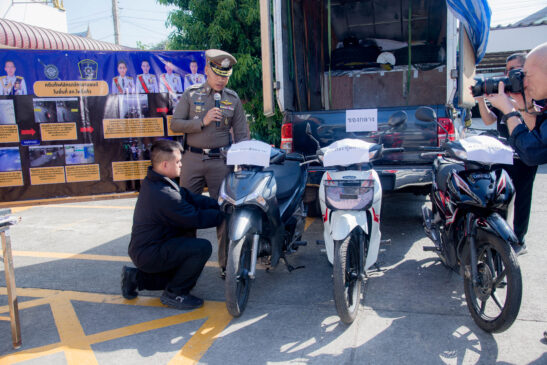 วันที่ 9 มกราคม 2569 เวลา 10.00 ที่ผ่านมา ที่สถานีตำรวจภูธรโพธิ์แก้ว อำเภอสามพราน จังหวัดนครปฐม พล.ต.ท.พิสิฐ ตันประเสริฐ ผบช.ภ. 7 พล.ต.ต.ชมชวิณ ปุระธนานนท์ รอง ผบช.ภ. 7 พล.ต.ต.พิพัฒน์ ชุ่มมณีกูล รอง ผบช.ภ. 7 ตำรวจภูธรจังหวัดนครปฐม พล.ต.ต.พิทักษ์ อุปพงษ์ ผบก.ภ.จว.นครปฐม รับการมอบหมาย จากผู้บัญชาการตำรวจภูธรภาค 7 ให้ทำการ แถลงผลการปฏิบัติ และการแจ้งเตือน ประชาชนเจ้าของทรัพย์สิน โดยเฉพาะรถจักรยานยนต์ พร้อมด้วย พ.ต.อ.เทิดเกียรติ รักพานิชมณี รอง ผบก.ภ.จว.นครปฐม พ.ต.อ.อิทธิพล พรเทวบัญชา รอง ผบก.ภ.จว.นครปฐม พ.ต.อ.จุลภณ มีชำนาญ ผกก.สภ.โพธิ์แก้ว พ.ต.ท.สมัชชา มหาพรหม รอง ผกก ป.สภ.โพธิ์แก้ว พ.ต.ท.ธนากร ภูริกวินเลิศ รอง ผกก.สส.สภ.โพธิ์แก้ว พ.ต.ท.ทีปกร คำพันธ์ สวป.สภ.โพธิ์แก้ว พ.ต.ท.กาวี เขียวงาม สวป.ชส.สภ.โพธิ์แก้ว พ.ต.ต.กานต์ธีรา ชาญพนา สว.สส.สภ.โพธิ์แก้ว ร่วมแถลงผลการจับกุม นายนพดล หรือ ติ วันทาลี อายุ 41 ปี ที่อยู่บ้านเลขที่ 87 หมู่ 1 ถนนคีรีรัฐ ตำบลเขมราฐ อำเภอเขมราฐ จังหวัดอุบลราชธานี นายบัญชา หรือ หวาด สีวงษา อายุ 36 ปี ที่อยู่บ้านเลขที่ 147 หมู่ 15 ตำบลเขมราฐ อำเภอเขมราฐ จังหวัดอุบลราชธานี และ นายขจรศักดิ์ หรือ นุ นิ่มเนียง อายุ 34 ปี ที่อยู่บ้านเลขที่ 53/3 หมู่ 4 ตำบลคลองจิก อำเภอบางประอิน จังหวัดพระนครศรีอยุธยา