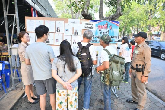 ซึ่งบรรยากาศเป็นไปด้วยความเรียบร้อย มีเจ้าหน้าที่ได้คอยบริการให้ข้อมูลแก่ประชาชนที่มาใช้สิทธิอย่างพร้อมเพรียง สัมภาษณ์ : 1. น.ส.ทิตินันท์ จึงจะดี อายุ 18 ปี ประชาชนจาก จ.นครศรีธรรมราช 2. นายฐาปกรณ์ สมรรถพลรมย์ อายุ 63 ปี ประชาชนจาก จ.ยะลา