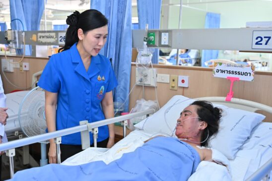 วันที่ 6 กุมภาพันธ์ 2569 นางสาวอโรชา นันทมนตรี ผู้ว่าราชการจังหวัดนครปฐม พร้อมด้วย นางศิริลักษณ์ พึ่งเนียม รองนายกเหล่ากาชาดจังหวัดนครปฐม นางกัญจนา สร้อยอินทรากุล ผู้ช่วยนายกเหล่ากาชาดจังหวัดนครปฐม นายโชติพงศ์ เปล่งวิทยา นายอำเภอเมืองนครปฐม และส่วนราชการที่เกี่ยวข้อง มอบถุงพระราชทานมูลนิธิราชประชานุเคราะห์ และมอบเงินสงเคราะห์ผู้ประสบปัญหาทางสังคมกรณีฉุกเฉิน จำนวน 3,000 บาท จากสำนักงานพัฒนาสังคมและความมั่นคงของมนุษย์จังหวัด ให้แก่ นายชาตรี ผ่านสะอาด ผู้ประสบอัคคีภัย พร้อมให้กำลังใจนางนิภารัตน์ ผ่านสะอาด ที่อาคารอุบัติเหตุ ชั้น 4 โรงพยาบาลนครปฐม