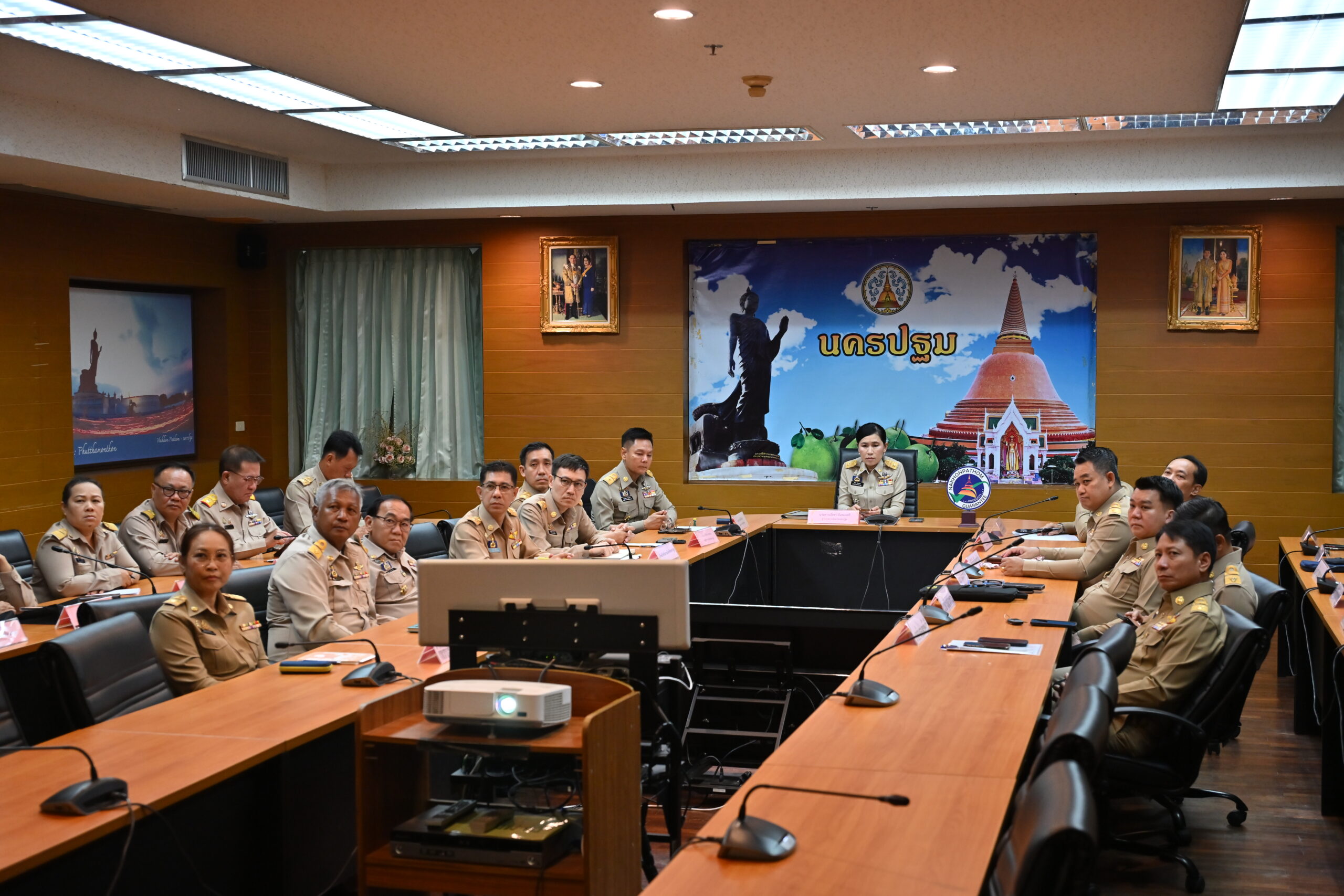 วันที่ 7 เมษายน 2569 ที่ห้องประชุม ศาลากลางจังหวัดนครปฐม นางสาวอโรชา นันทมนตรี ผู้ว่าราชการจังหวัดนครปฐม พร้อมด้วย รองผู้ว่าราชการจังหวัด นายอำเภอและผู้แทนทั้ง 7 อำเภอ หัวหน้าส่วนราชการ ข้าราชการ และเจ้าหน้าที่จากหน่วยงานในสังกัดกระทรวงมหาดไทย ร่วมประชุมรับมอบนโยบายการปฏิบัติงานจาก นายอนุทิน ชาญวีรกูล นายกรัฐมนตรีและรัฐมนตรีว่าการกระทรวงมหาดไทย รวมทั้งรัฐมนตรีช่วยว่าการกระทรวงมหาดไทย ผ่านระบบวีดิทัศน์ทางไกล เพื่อขับเคลื่อนภารกิจของกระทรวงมหาดไทยให้เป็นไปในทิศทางเดียวกัน