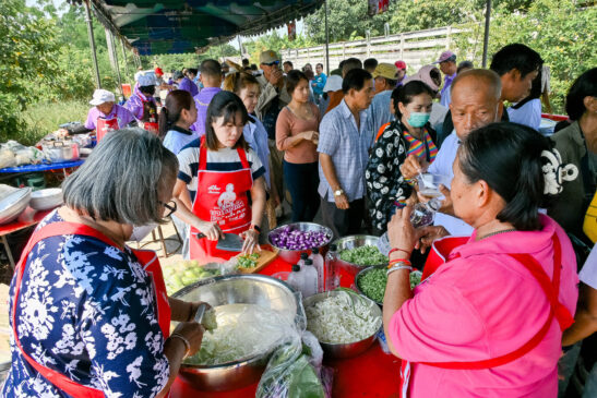 อิ่มท้อง อิ่มใจ แจกทานครั้งใหญ่เพื่อประชาชนนอกจากพิธีการที่เป็นทางการแล้ว อดีต สจ.นก ยังได้จัดเตรียมซุ้มอาหารคาว-หวานหลากหลายเมนูจากร้านเด็ดร้านดังในพื้นที่ มาเปิดให้ชาวบ้านทั่วไปได้เข้ามารับประทานฟรีตลอดทั้งงาน เพื่อเป็นการขอบคุณและคืนกำไรให้กับสังคม